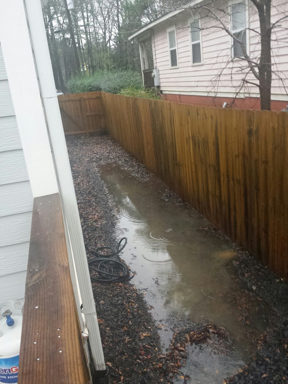 The color scheme for a backyard drain should be neutral and earthy, with shades of brown, gray, and green. These colors will blend in with the natural surroundings and provide a calming and relaxing atmosphere. A pop of color can be added with decorative stones or plants around the drain.